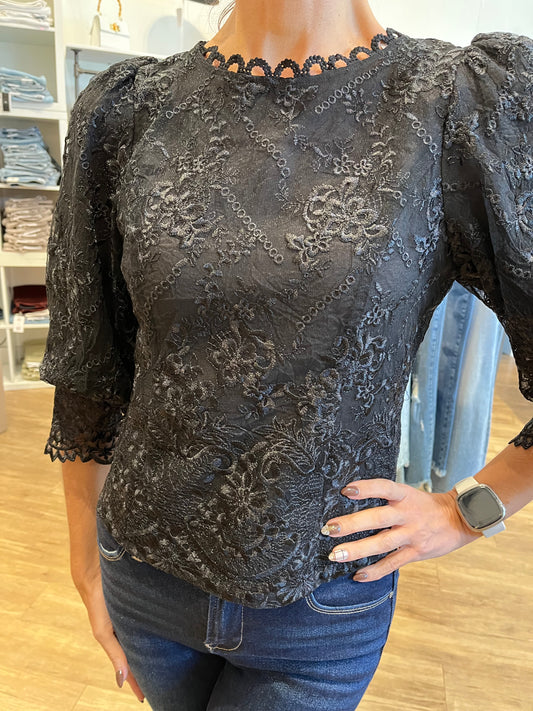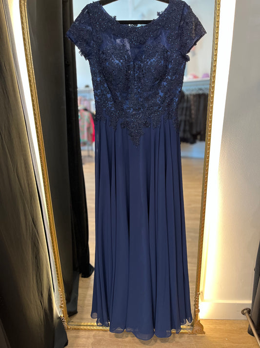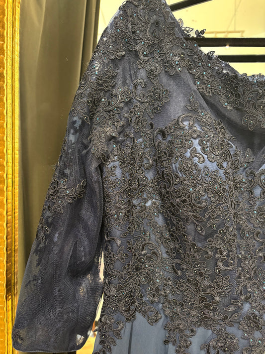 Adaline Formal Dress- Navy 3/4 Sleeve Length