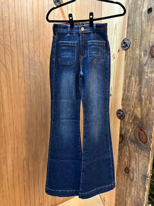 Ruffled Collar Button Front Velvet Blouse- Navy Blue