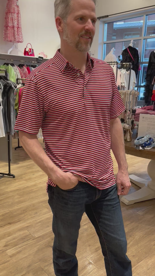 Tucker Polo- Black & Red Stripes