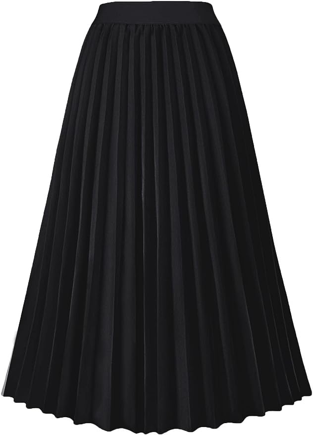 This maxi black pleated skirt is made from 100% polyester for a sturdy yet stretchy fit. The pleats are expertly crafted with the waistband stretching to give you a comfortable and flattering fit.