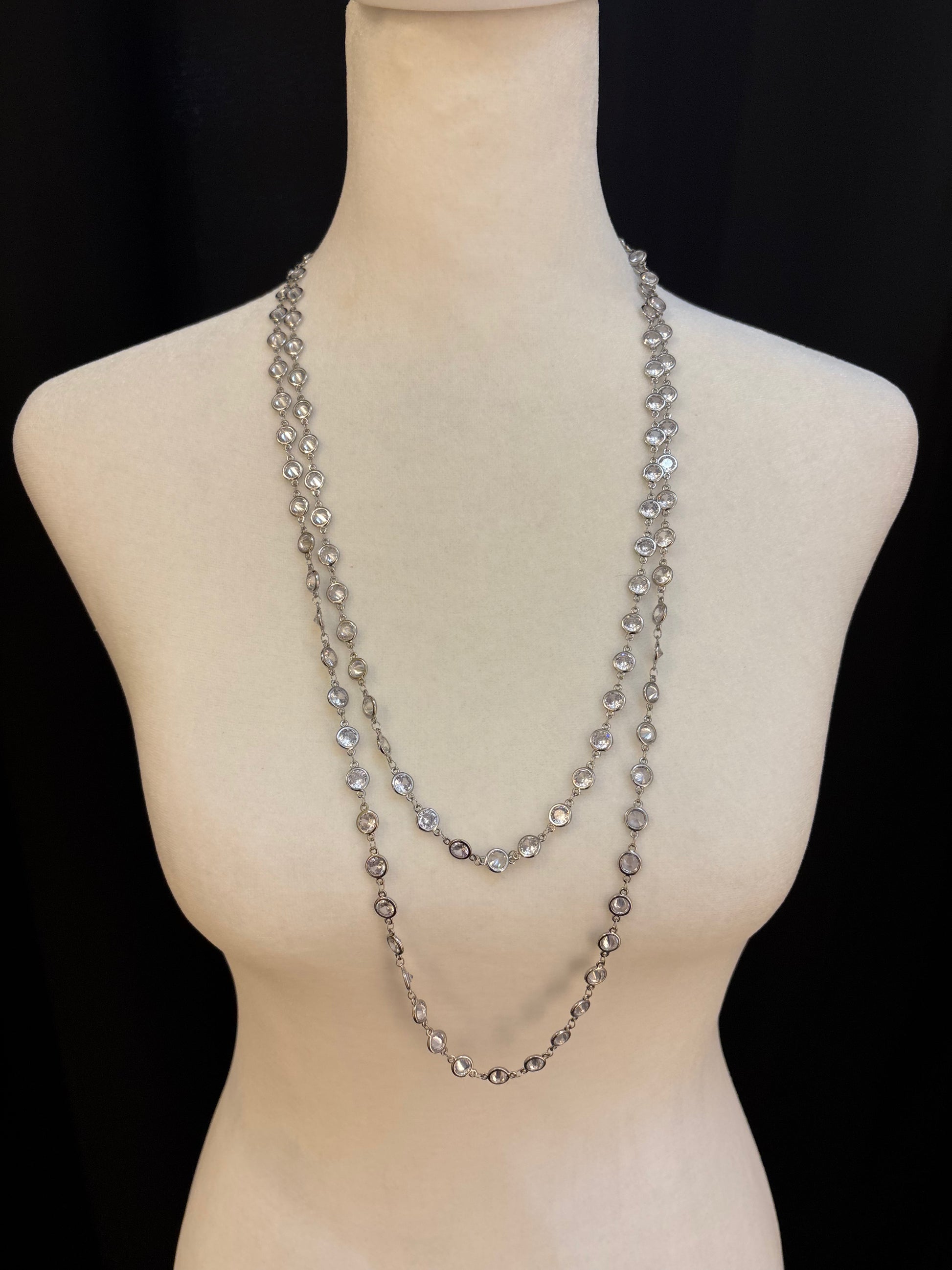 This exquisite Water Resistant double layer chain necklace serves as a fashionable adornment. Embellished with Cubic Zirconia, this luxurious necklace radiates pure opulence.