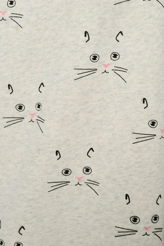 Introducing the luxurious Luna Cat Sweats-Lounge Set. Snuggle up in style with these cozy and playful sweatpants featuring adorable cat faces. Made from soft fabric, they are perfect for lounging, running errands, or curling up with a good book. With an elegant design, accessible pockets, and comfortable fit, it will surely capture your heart.
